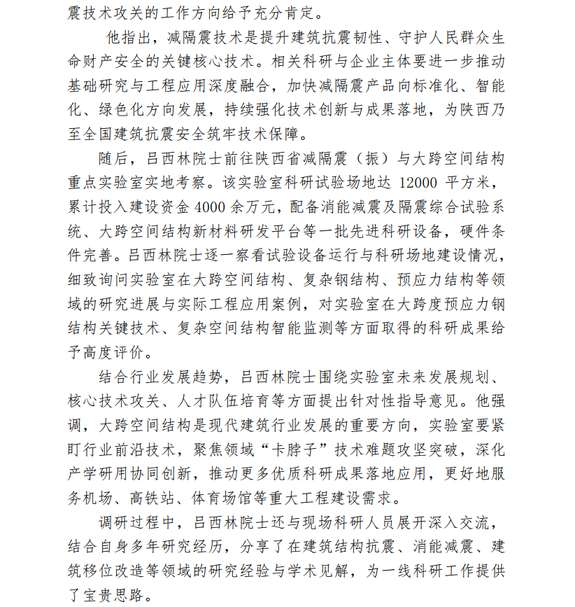 院士大师进企业系列 --吕西林院士深入西安科研一线·调研减隔震与大跨空间结构技术发展